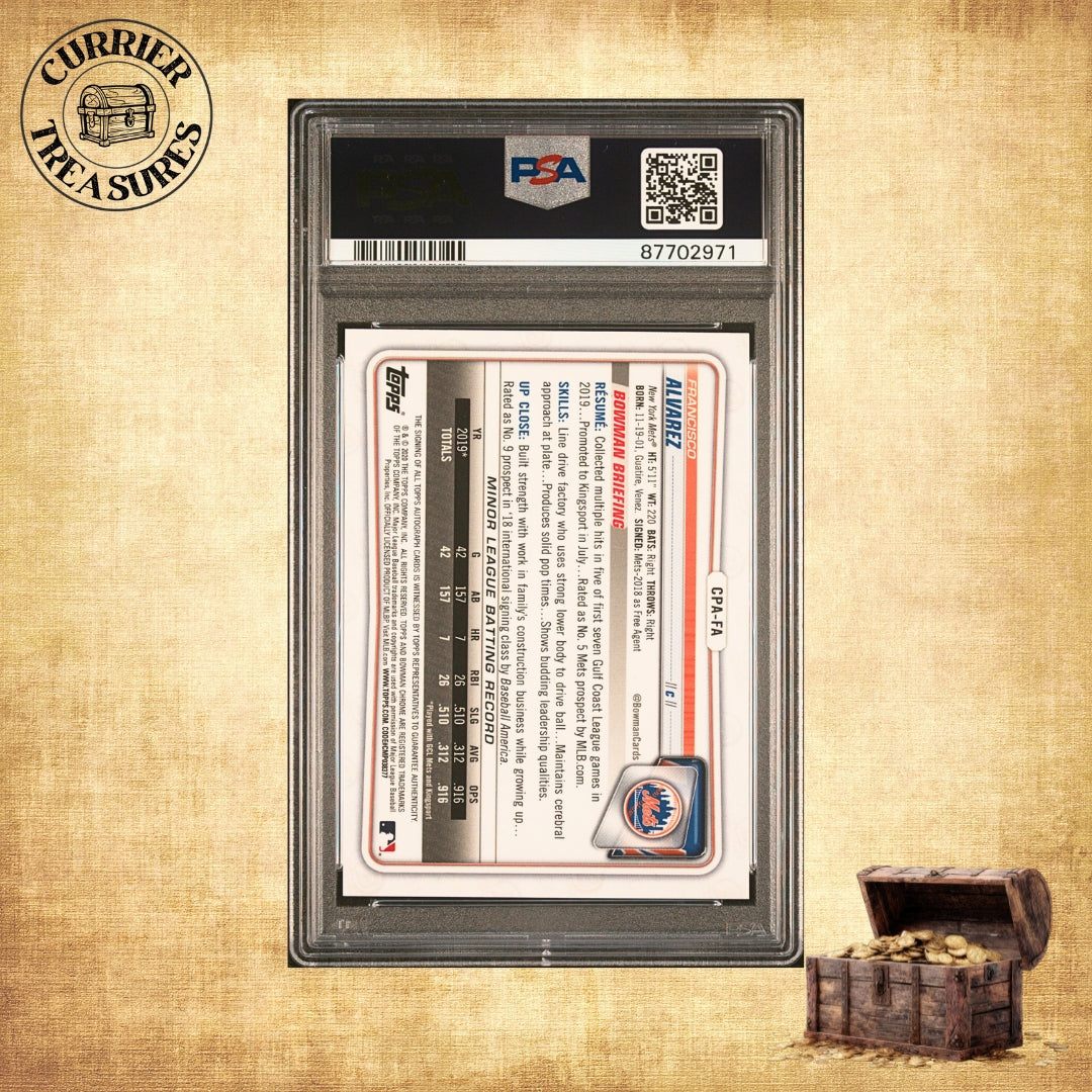 2020 Bowman Chrome Prospect Autographs #CPAFA Francisco Alvarez – Gold Shimmer Refractor PSA 10